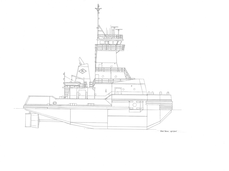 owned by Reinauer Transportation Companies of Staten Island, New York. Rendered here in line, black and white. As well as color. To allow customer the option for production of apparel. Commissioned by a Private Party.