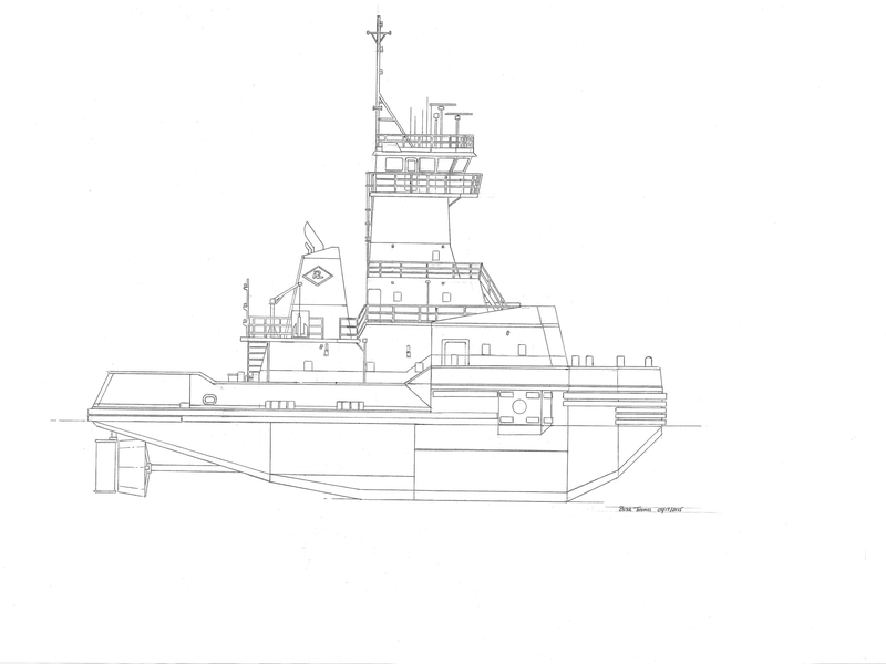 The ATB Laurie Ann Reinauer, owned by Reinauer Transportation Companies of Staten Island, New York. Rendered here in line, black and white. As well as color. To allow customer the option for production of apparel. Commissioned by a Private Party.
