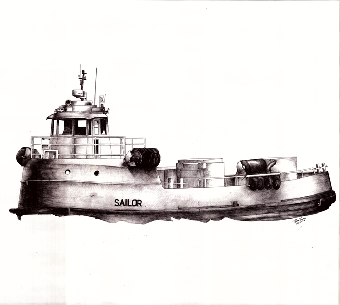 , owned by Marine Lubricants Incorporated of Wilmington, Delaware. Rendered here in black and white, done with a Bic Pen. Commissioned by Captain Joseph Schilling.