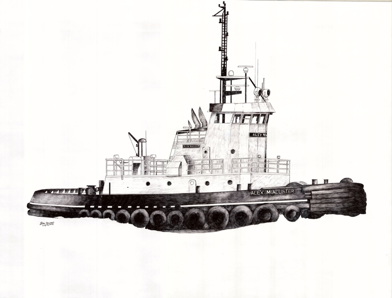 owned by McAllister Towing and Transportation of New York, New York. Rendered here in black and white, done with a bic pen.