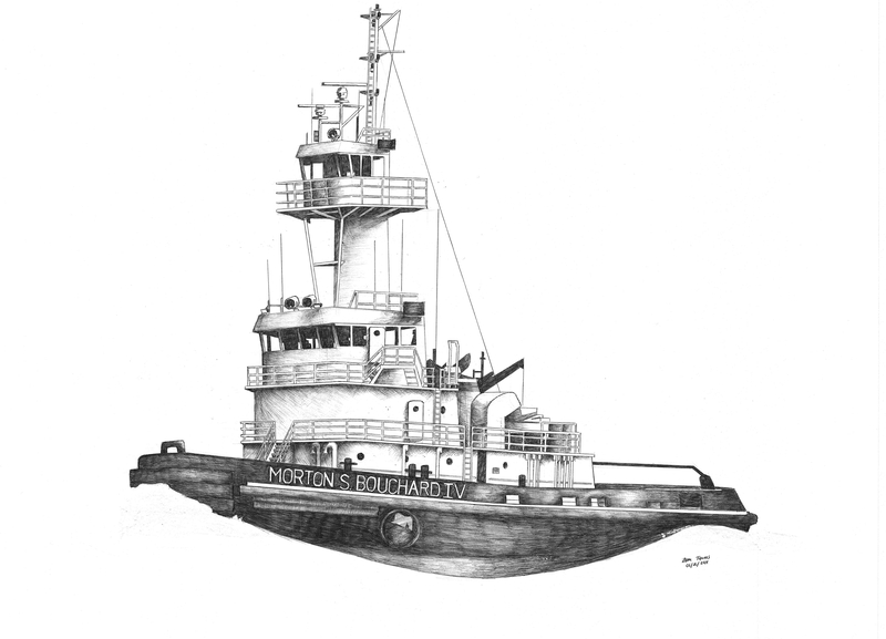 owned by the Bouchard Transportation Company of Melville, New York. A black and white piece, done with a bic pen. Commissioned by a private party.