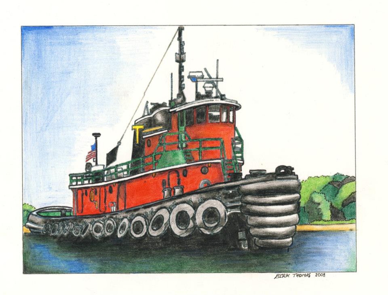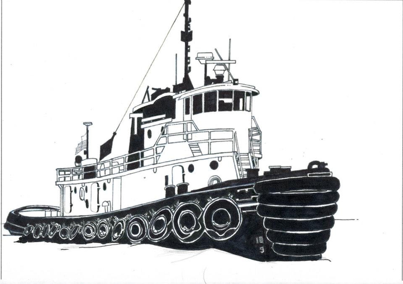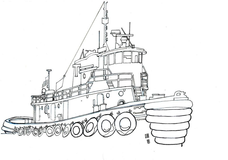 owned by the Thames Towboat Company of New London, Connecticut. Rendered here in line format, black and white, as well as full color.